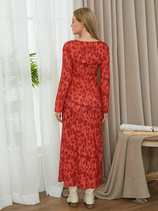 VintageCharm V-Neck Patchwork Dress Backless Loose Midi Dress