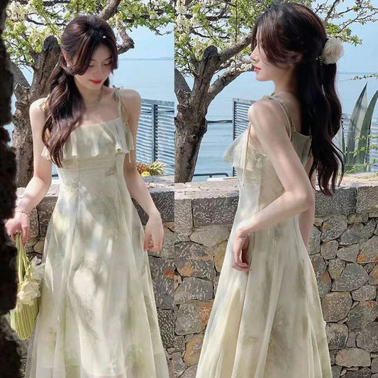 VintageCharm V-Neck Patchwork Dress Backless Loose Midi Dress