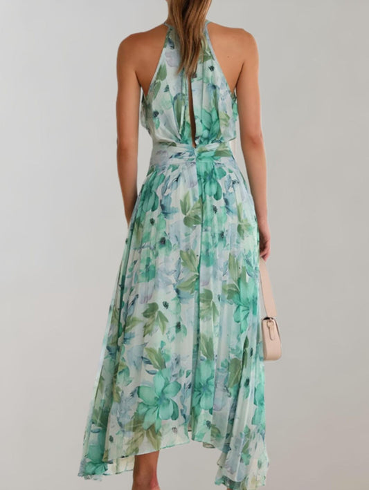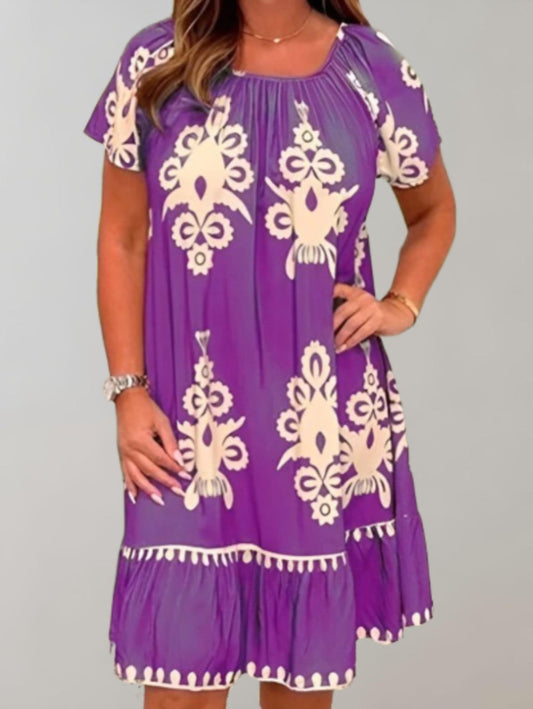 Luna - Floral V-Neck Summer Dress with Half Sleeves