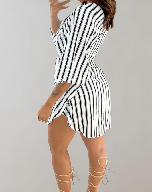 Briana - Striped Mini Dress with Batwing Sleeves and V-Neck