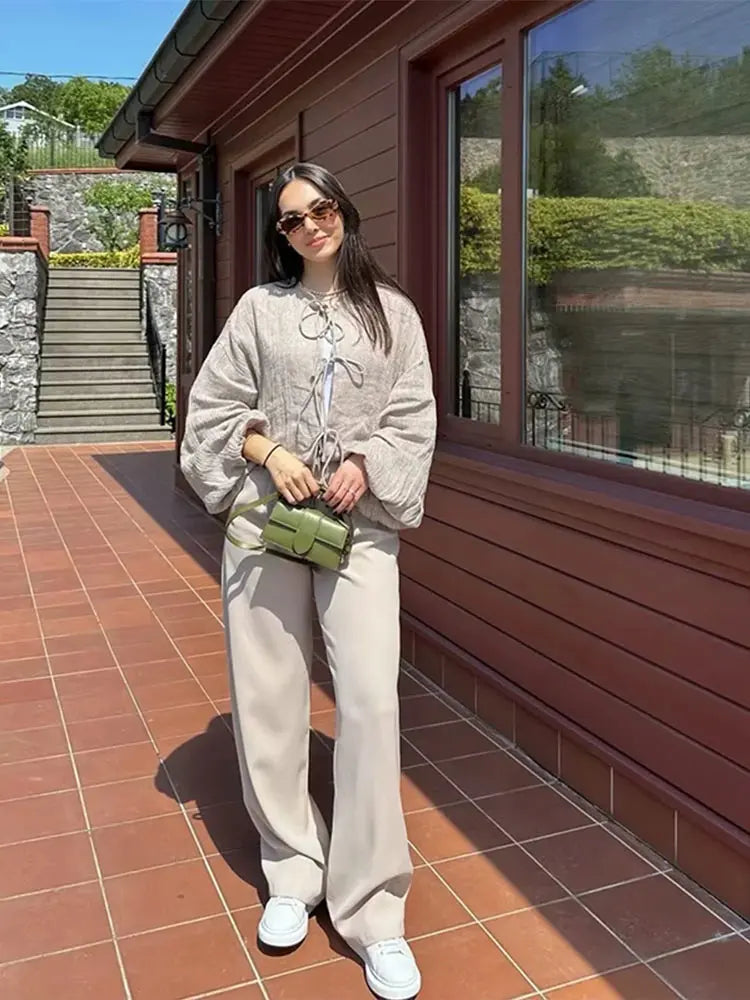 2 Elegant Design: The round neck and flare sleeves provide a touch of femininity, while the loose fit ensures maximum comfort.